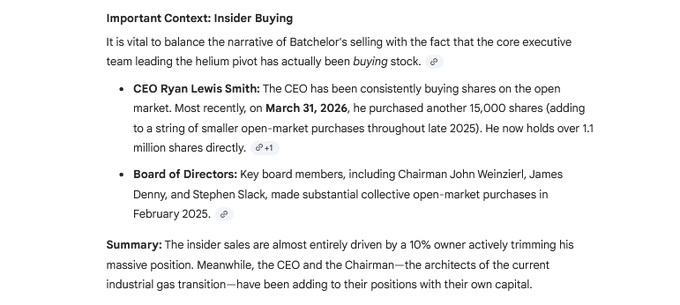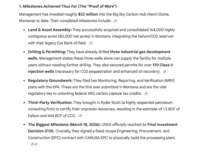 The deeper I go into $USEG, the more I like it. Financing: They only have 2.5m in debt, and a very straight-forward $25m Common Stock Purchase Agreement with Roth. They can sell to Roth at fixed 2.5% discount to the VWAP at their discretion. If you believe the reserves are real and worth developing, they clearly need capital to do that. This seems like the least problematic financing one could envision. Company History and Milestones Achieved: In 2024 they sold off oil reverses that were producing considerable revenue in order to pursue this build out of a helium and carbon capture facility. Since then they have made steady progress. Insider Ownership: Insiders own 36%, with CEO buying on the open market recently. Basically only selling has been a 10% owner trimming a massive position. Nothing about this reads to me as hype story or grift.